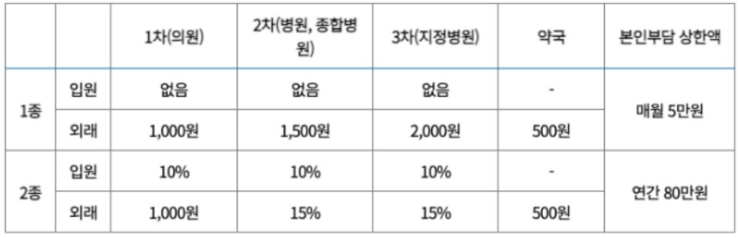 근로능력이 있는지 없는지에 따라 1종/2종으로 구분하게 되며, 다른 비용은 신경 안쓰셔도 되고, 본인부담 상한액 부분만 내야하기 때문에 이부분을 확인하셔야 합니다.